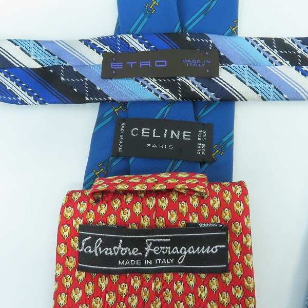 Salvatore Ferragamo/サルバトーレフェラガモ ETRO/エトロ CELINE/セリーヌ 総柄 シルク100% ネクタイ 3点セット