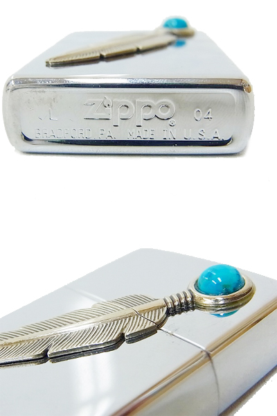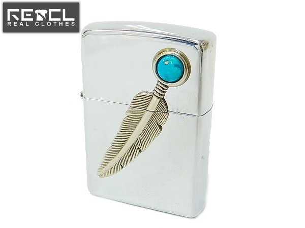 zippo/ジッポー ターコイズ&フェザー 鏡面/04年製 買取りました!