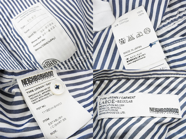 NEIGHBORHOOD/ネイバーフッド 半袖ストライプシャツ 紺白/L買い取りました。