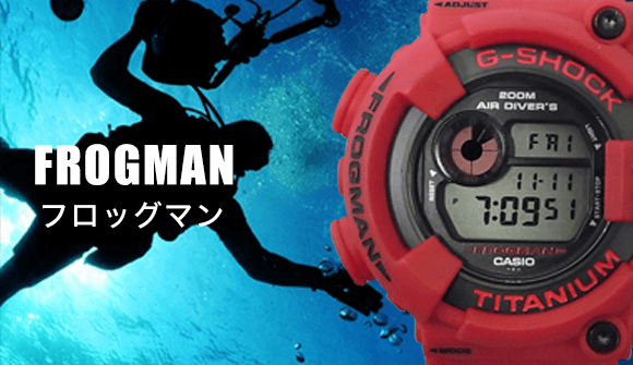 1983年に初代フロッグマンDW-6300が発売されて、 2代目フロッグマンDW-8200、3代目フロッグマンDW-9900、4代目フロッグマンGW-200、 5代目フロッグマンGWF-1000とその時々の先端技術を取り入れて進化を続けG-SHOCKの中でも圧倒的な人気を誇るフロッグマン! リアクロではレアモデルから最新モデルまでフロッグマンを高価買取致します!